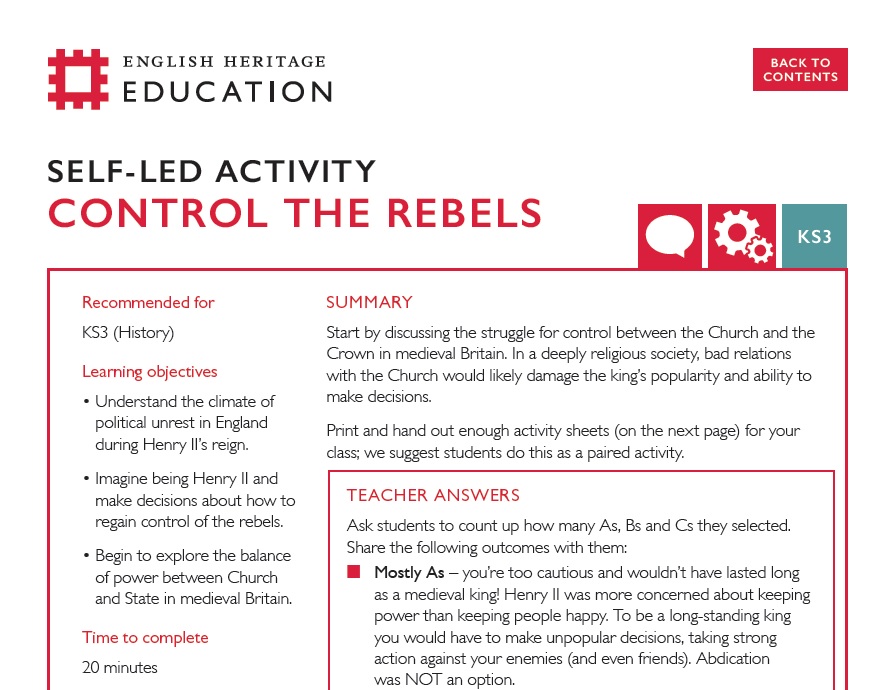 Control the Rebels (KS3) - Orford Castle Teachers' Kit