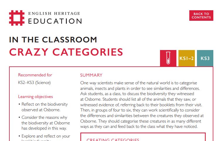Reflect on the biodiversity that you and your class have observed at a historic environment like Osborne on the Isle of Wight. Consider how scientists have categorised the plants and animals they have discovered.